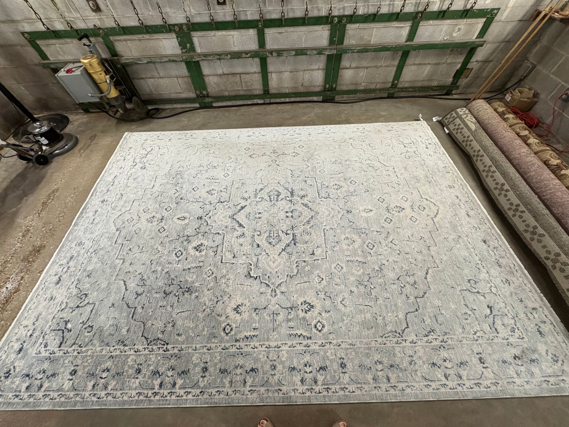 Mild heat and airflow is applied as the rug hangs to dry. Using compressed air, the fibers are given a luxurious fluffing.